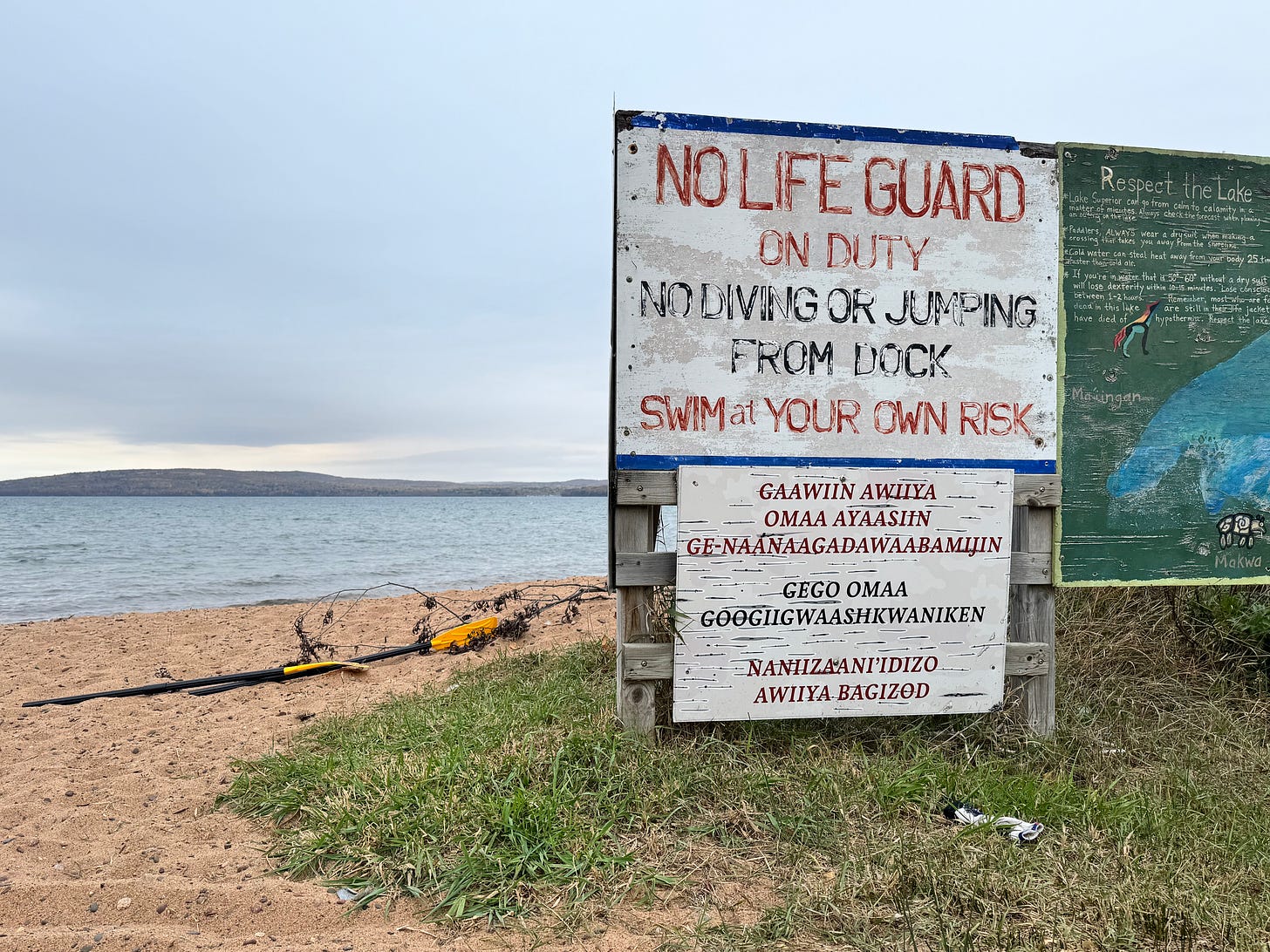 Then French fur traders and missionaries arrived in the 17th century to set up trading posts and churches in La Pointe, the only village on the island’s western shore. The American Fur Company’s La Pointe post was headed by Michel Cadotte, a trader of French and Ojibwe ancestry; his wife was Ikwesewe, or Madeline, the daughter of the local chief for whom the island is named. After the 1842 Treaty of La Pointe ceded Lake Superior Ojibwe lands to the United States in exchange for hunting and fishing rights and reservations, most of the Madeline Island Ojibwe resettled to the mainland. Today the island runs on summer tourism, though it’s the only place in Wisconsin not on a reservation with bilingual signage in both English and Ojibwe. “Gidanamikaagoo Mooningwanekaaning,” read the sign as the ferry slipped into the dock. “Welcome to Madeline Island.”