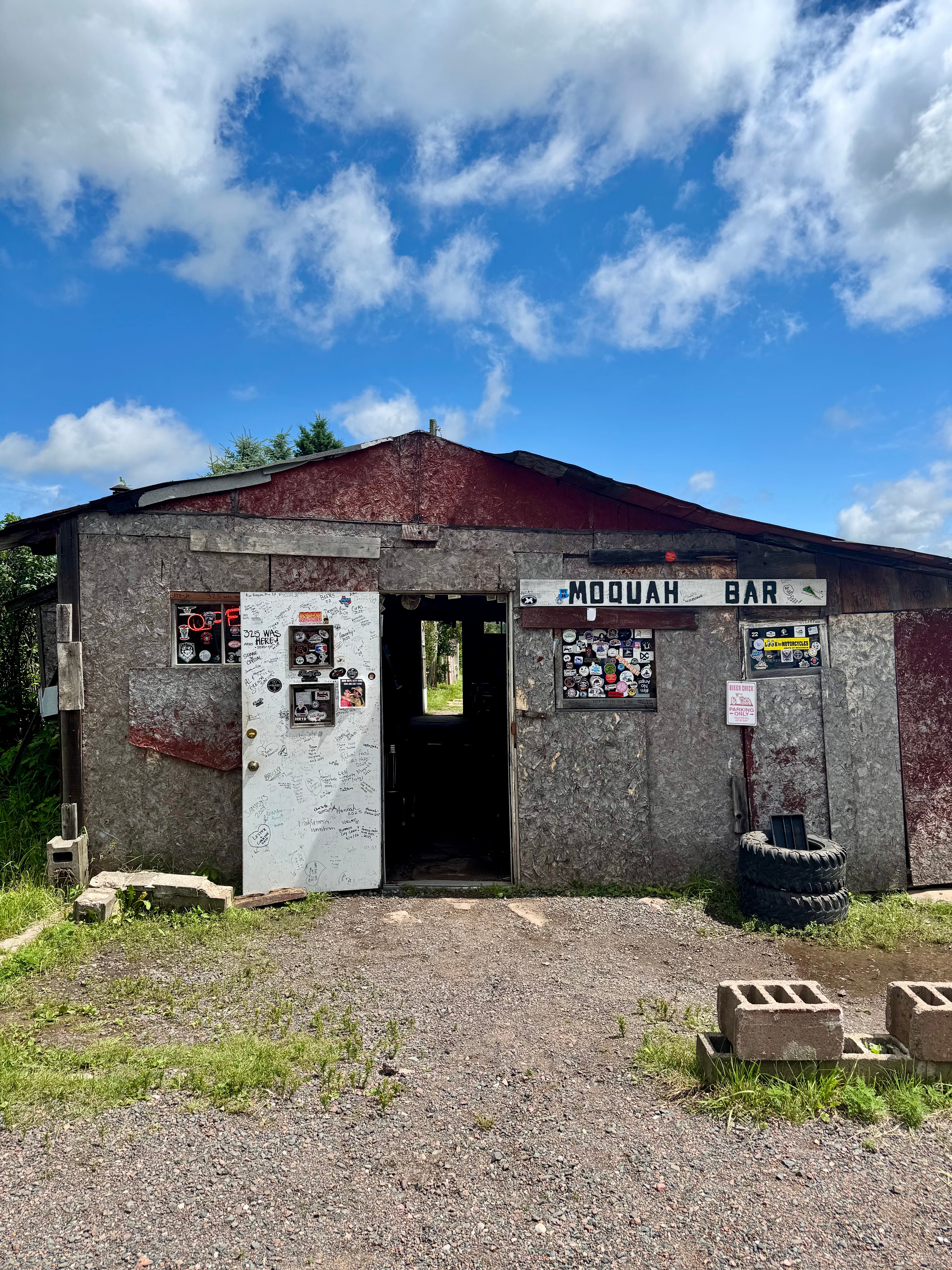 It’s hard to say how many people live in Moquah, an unincorporated community within the town of Pilsen (pop. 216), though my guess would be somewhere between 12 and 24. Here in the far northwestern corner of Wisconsin, amidst endless rolling farmland and miles of ATV trails, there are a few weather-worn houses, a Catholic church, a town hall, and the most infamous dive bar in all of the Midwest. For years I had heard whispers about the Plywood Palace, the nickname for what was once called simply “Moquah Bar.” In photographs, the place appeared to be a plywood hovel with no running water and minimal electricity, decked with dollar bills and forsaken panties, and owned and operated by a hermit known as Bud. “Definitely a must see! Just for the experience! You won’t regret it!” said one reviewer, who continued: “HOWEVER JUST get BEER or something that’s served PACKAGED! & Use the bathroom BEFORE visiting!”